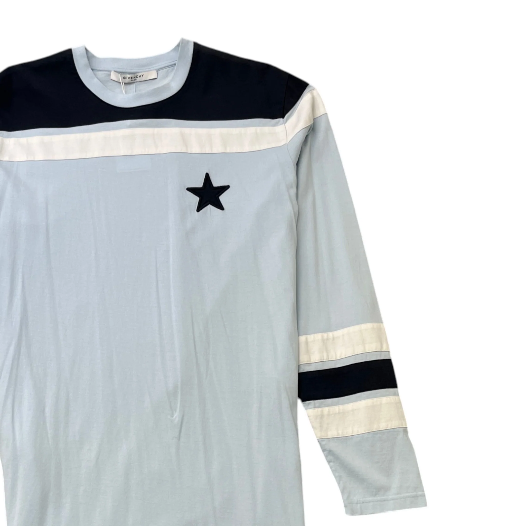 -70%Men's Embroidered Star Long Sleeve T-Shirt Blue Size S—